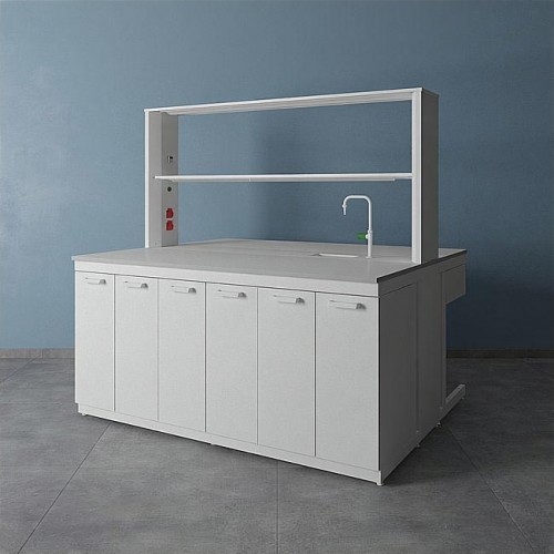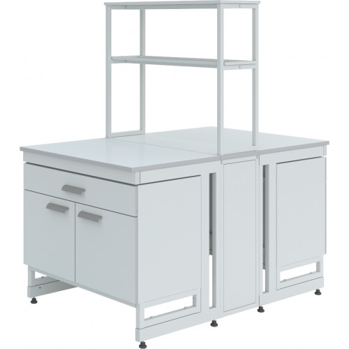 Стол островной ЛК-1800 СО дополнительно может комплектоваться различными тумбами, а также сливными раковинами, кранами для подвода воды или газа (сжатого воздуха), которые монтируются в технологическую приставку.