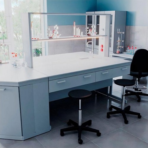 В каркасе лабораторного стола предусмотрены регулируемые опоры в диапазоне 0-30 мм для компенсации неровностей пола.