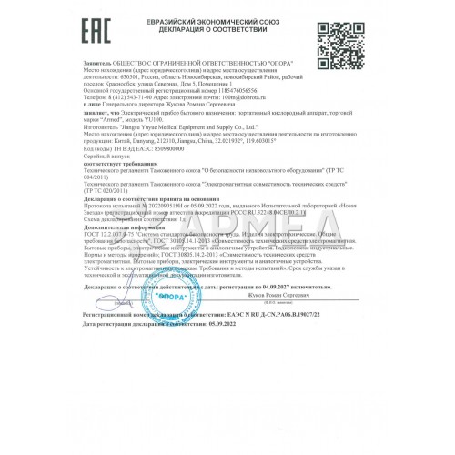 КИСЛОРОДНЫЙ АППАРАТ YU100 "Armed"