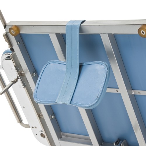 Тазобедренная секция кресла-кровати снабжена двумя регулируемыми держателями для рук и двумя упорами для ног.