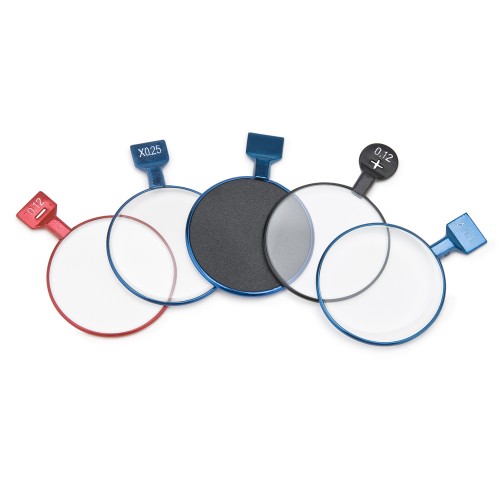 Вспомогательный линзы используются для дополнительного исследования зрения (окклюдер, точечная диафраагма, щелевая диафрагма, красный светофильтр, зеленый светофильтр, скрещенный цилиндр).