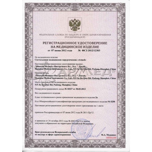 Светильник диагностический хирургический «Armed»: ZMD предназначен для освещения рабочего поля при проведении хирургических операций,