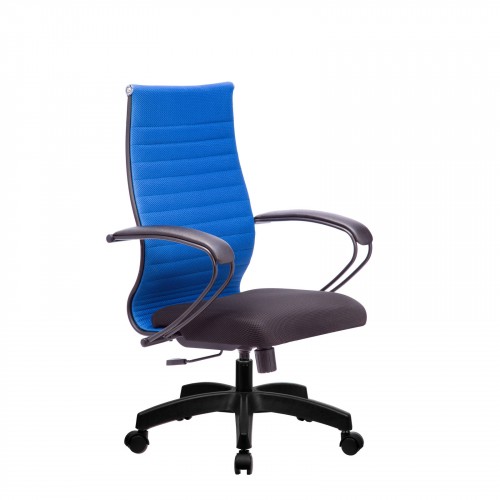- синяя спинка с черными накладками подлокотника и черным сиденьем;
