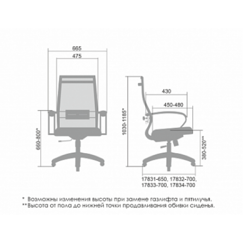 **Высота сиденья в верхнем и нижнем положении может быть изменена, в зависимости от модели применяемого газ-лифта.