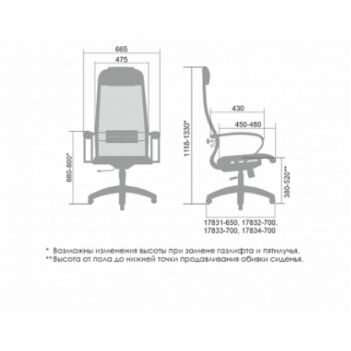 ** Высота сиденья в верхнем и нижнем положении может быть изменена, в зависимости от модели применяемого газ-лифта.