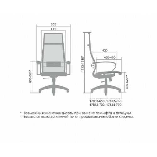 Сиденье: на стальном каркасе с черным полимерным покрытием, ширина 475 мм;