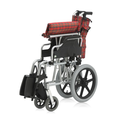 Кресло-коляска оснащена колесами, имеющие задние пневматические шины и передние цельнолитые шины.
