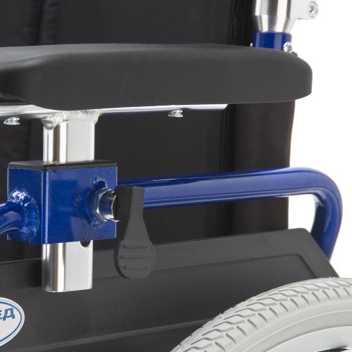 Кресло-коляска оснащена съемными, откидными регулируемыми по высоте подлокотниками.