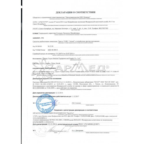 Трость изготовлена из легкого, прочного и устойчивого к коррозии алюминиевого сплава.